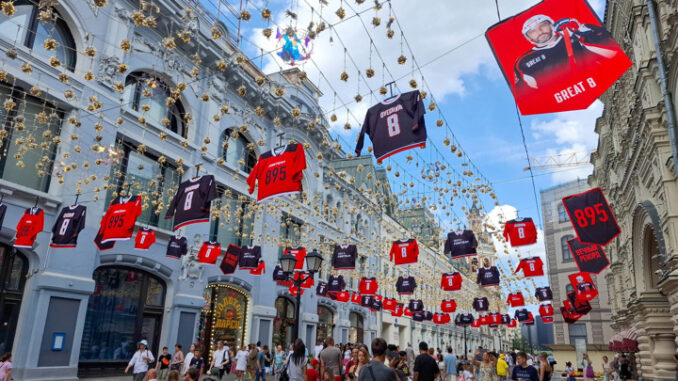 На Никольской улице в Москве появились баннеры, посвященные Александру Овечкину и его рекорду в Национальной хоккейной лиге (НХЛ).