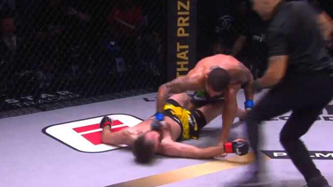 Магомедов упал, после чего Петтис провел добивание, вынудив рефери остановить бой.