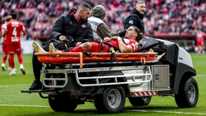 Бабич получил травму на 6-й минуте в результате неудачного приземления на газон, 29-летнего сербского защитника унесли с поля на носилках. На замену игроку вышел камерунец Кристофер Ву.