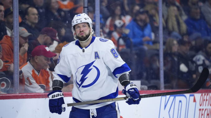 Читать Вести в MAX Клуб «Тампа-Бэй Лайтнинг» провел торжественную церемонию в честь 1000 очков форварда команды Никиты Кучерова в Национальной хоккейной лиге (НХЛ).