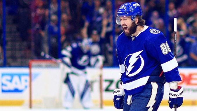 В ночь на воскресенье Кучеров в матч с командой "Анахайм" (4:3) отметился результативной передачей, благодаря чему достиг отметки в 1000 очков в НХЛ.